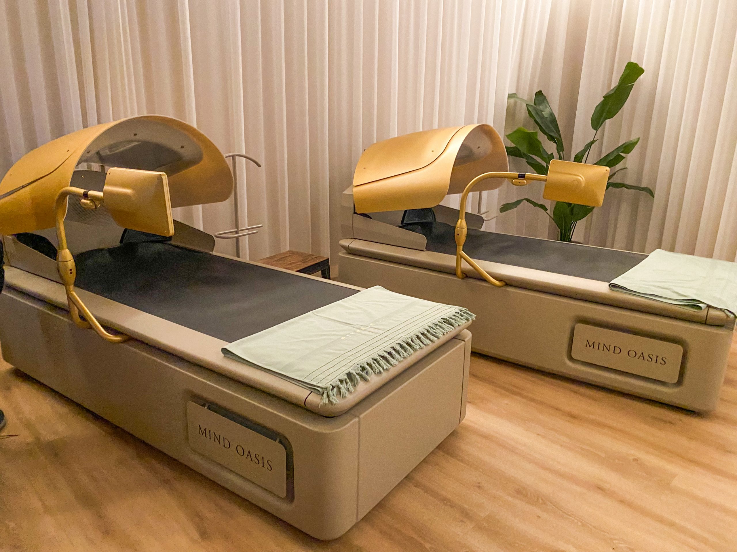 « Mind Oasis » se trouve au premier étage de la boutique et propose un grand espace de relaxation : salle d’attente, boxs de « relaxation mentale » et plusieurs matelas d’hydromassage. C’est la dernière option que nous avons testé et croyez-moi, elle en valait la peine !