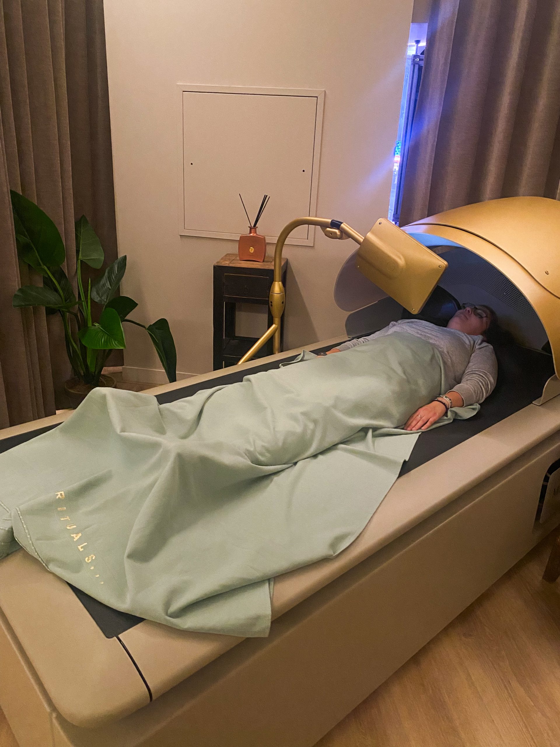 Installés chacun sur notre matelas massant (composé d’eau) avec une couverture bien chaude, nous avons pu contrôler du début à la fin notre expérience. Pression des buses, intensité de la beauty light, volume sonore et diffusion des odeurs : tout peut être réglé à l’aide de la tablette attenante à votre matelas.