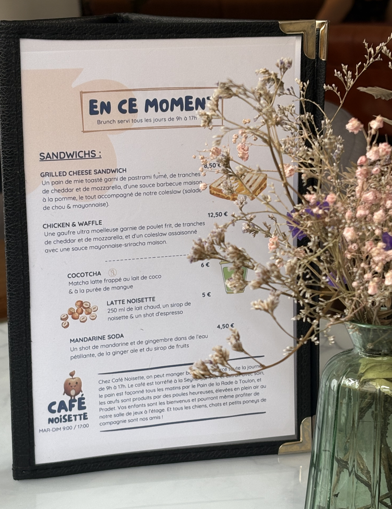 Installés depuis quelques mois au 9 rue César Vezzani à Toulon, Camille et Julien vous accueillent avec toute leur équipe, du mardi au dimanche et de 9h à 17h dans leur Café Noisette ! Un espace chaleureux, cosy, kid friendly (avec un espace adapté pour les tous petits) et où sont servis des brunchs d’une très grande qualité !