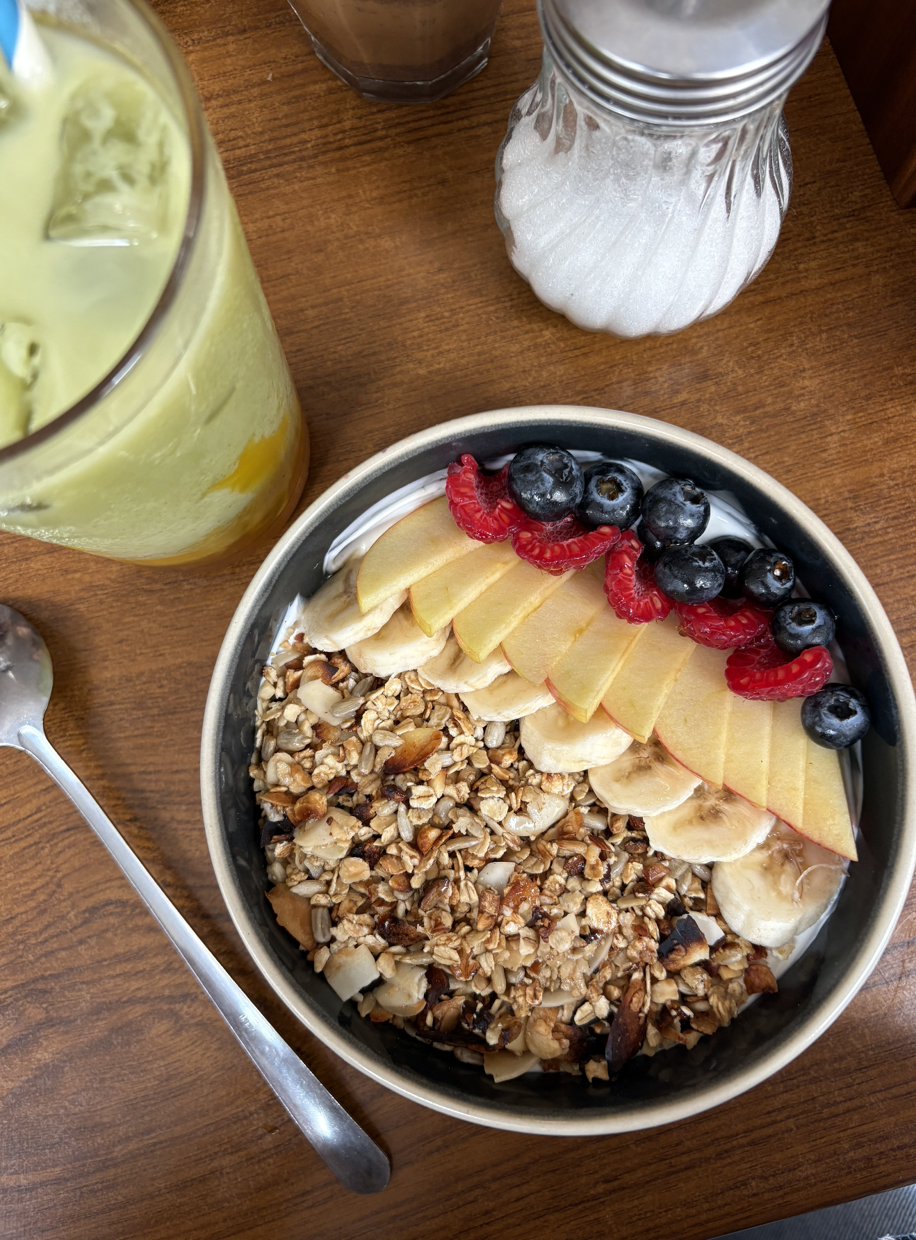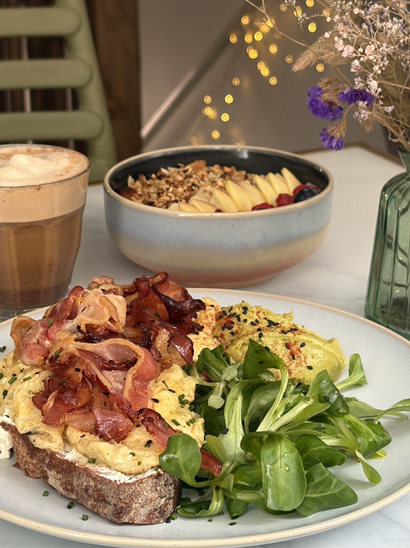 Lors de notre venue, nous avons testé plusieurs des produits proposés à la carte. le « eggs & side », le « pain beurre confiture », le « chicken waffle » et le « granola bowl ». En terme de boissons on a pris un mocha et un « cocotcha » (matcha latte frappé au lait de coco et à la purée de mangue). Et comment vous dire qu’on s’est R-É-G-A-L-É-S.