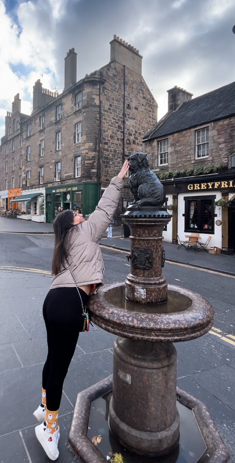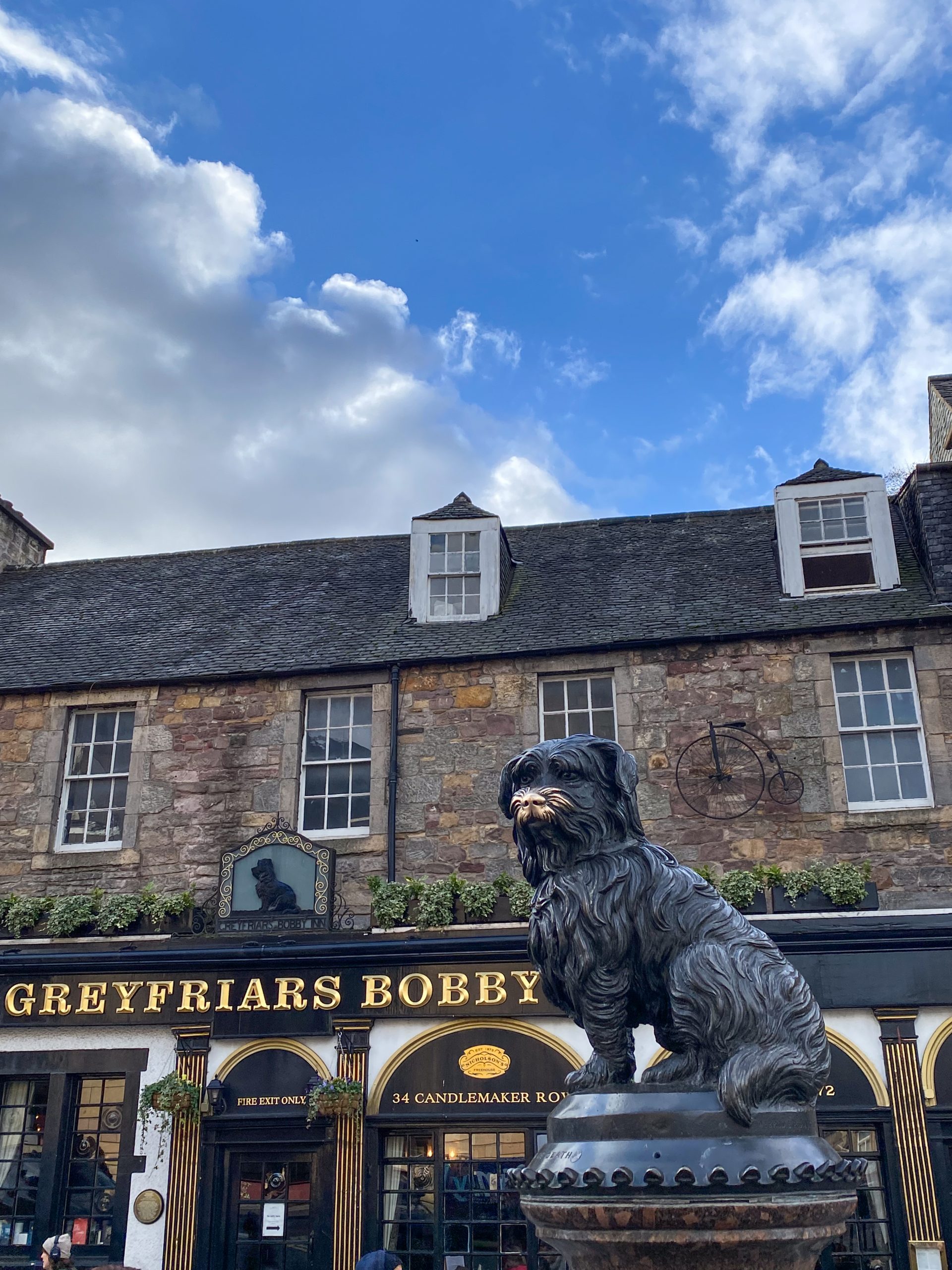 Sans aucun doute ma statue préférée de tout le séjour car l’histoire de Greyfriars Bobby est plus que touchante. Bobby était le chien de John Gray, policier à Edimbourg dans les années 1850. 2 ans après l’avoir recueilli, John décéda subitement de la tuberculose. Durant toutes les années qui ont suivi, Bobby se rendit chaque jour sur la tombe de son défunt maitre, au cimetière de Greyfriars et y passait ses journées entières. Un symbole puissant de fidélité que les Écossais ont décidé de mettre à l’honneur grâce à cette jolie statue. (Une légende raconte que le fait de lui frotter la truffe porterait chance !)