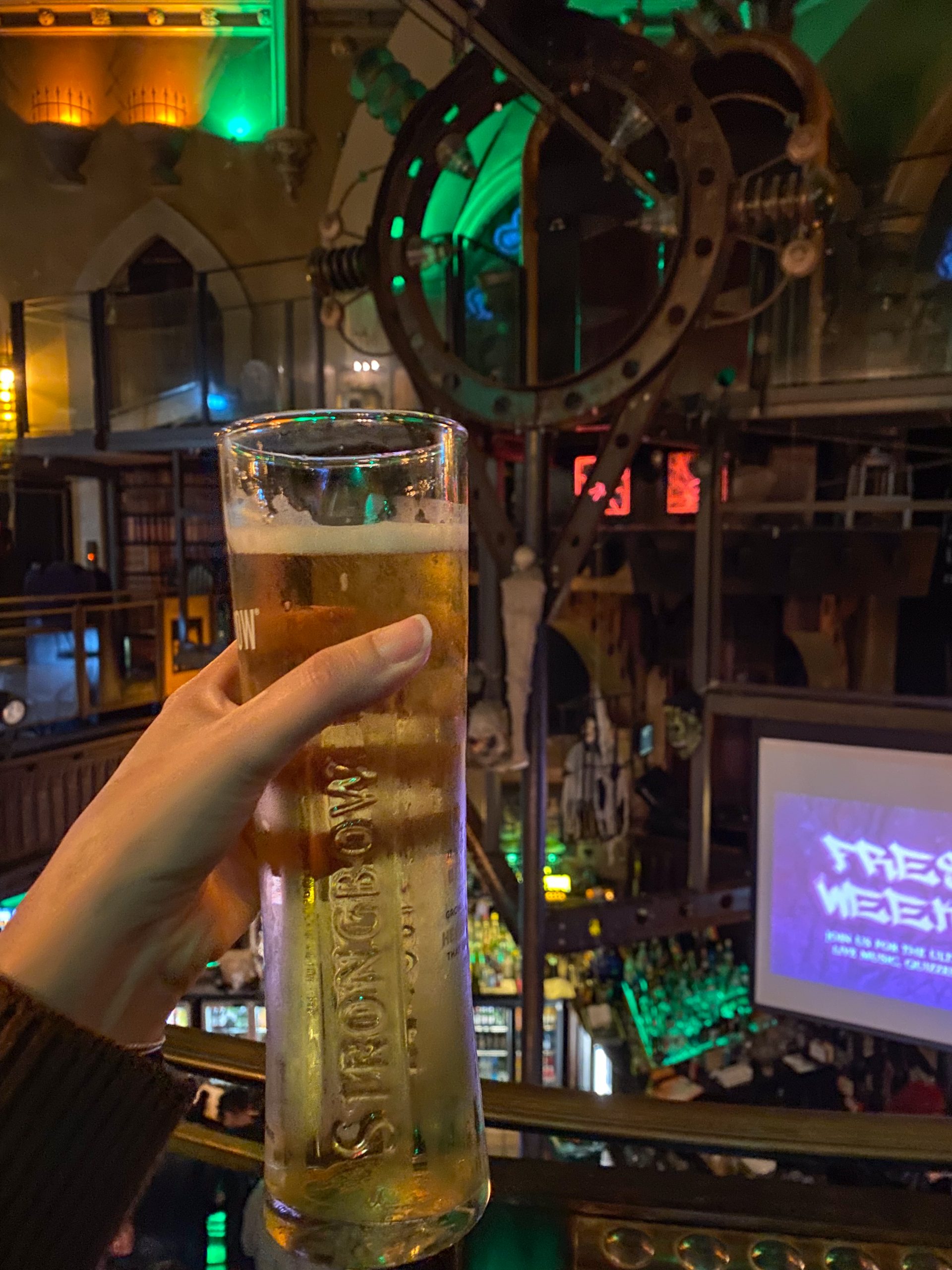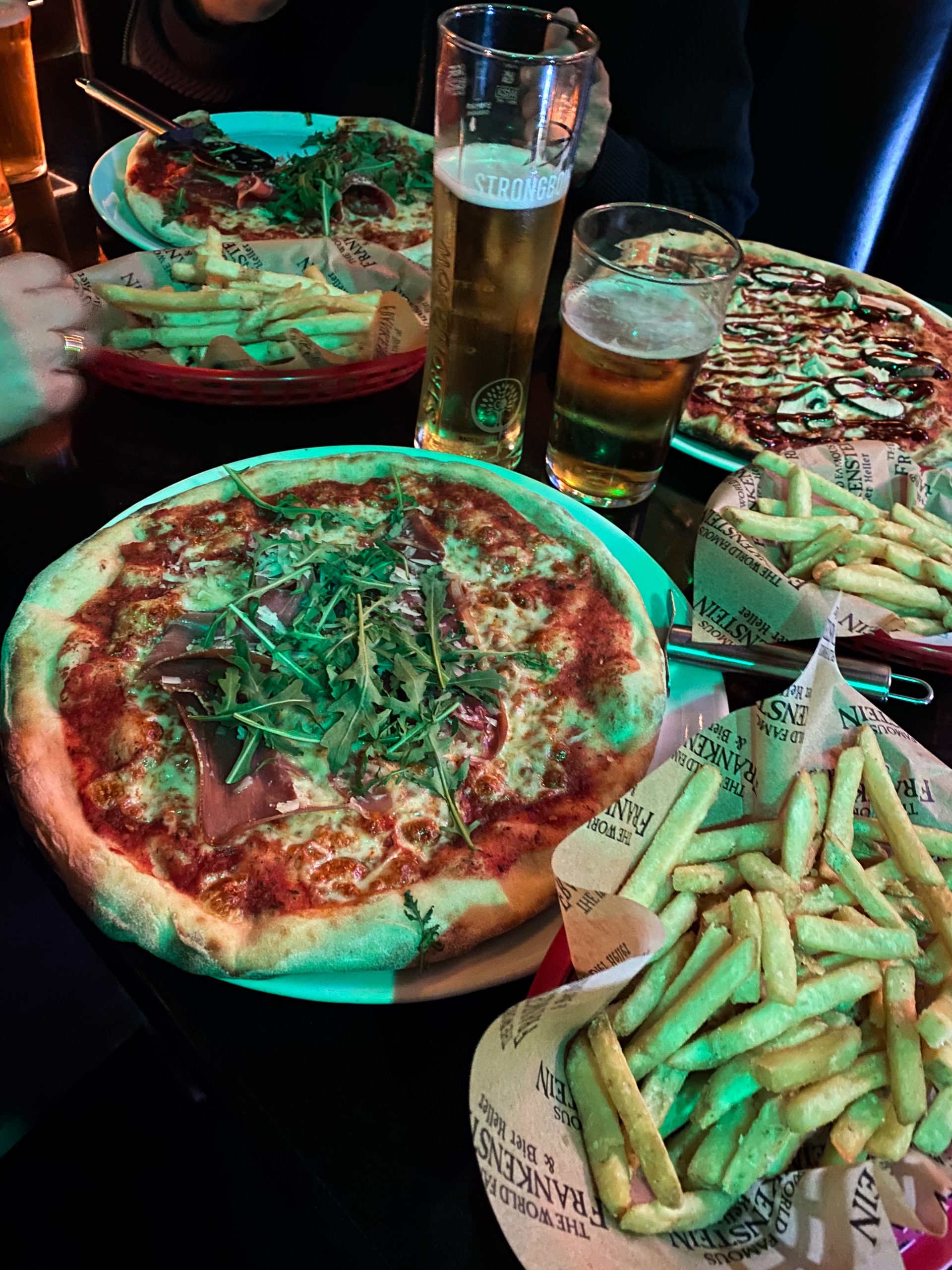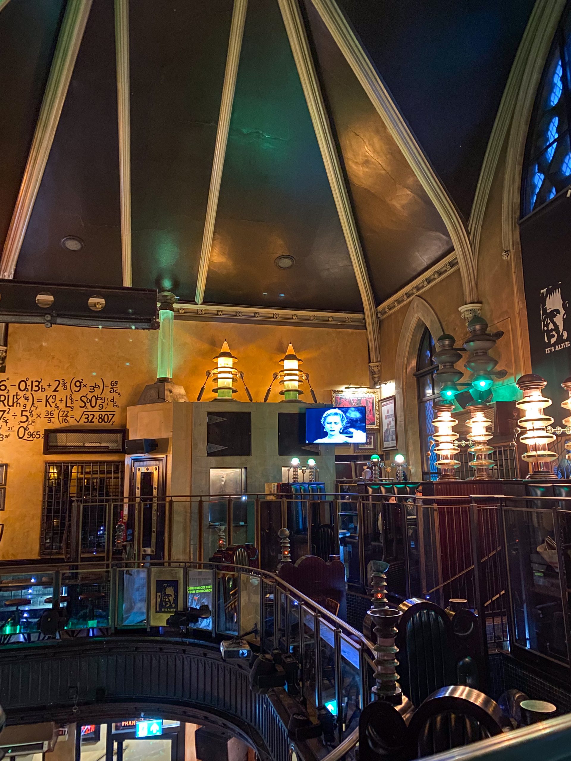 Pour le coup ici, c’est le concept du pub qui vaut vraiment la peine (et les bières/cidres) : vous entrez dans le laboratoire farfelu de Frankenstein ! Tout est pensé pour vous plonger dans l’univers du savant fou : calculs aux murs, lampes, mobilier… sans compter l’animation qui vous attend durant votre repas ! (Mais ça je vous laisserai découvrir, je ne dis rien !!) Quant aux repas proposés, ils sont très simples : pizzas / frites et éventuellement quelques tapas.