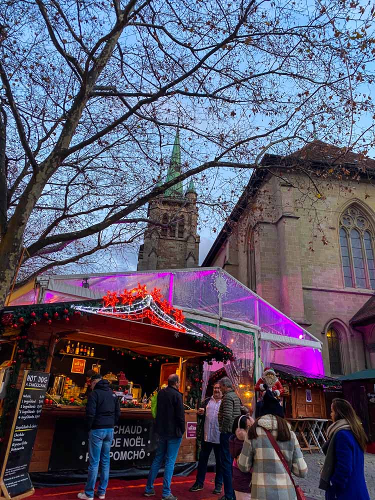 À Lausanne toujours, nous avons pu nous rendre dans le seul marché de Noël qui était encore ouvert à cette période. Proche des Portes St François, nous y avons acheté des spécialités locales : du fromage et de la bière (et de la tartiflette aussi) !